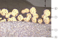 2. 铜粉层0.2~0.3mm,具有很好的承载能力和耐磨性,良好的导热性能可及时转移轴承运作过程中产生的热量。复合材料可渗入到铜粉球的间隙中,提高了结合强度。